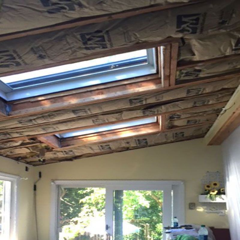 At this Sag Harbor home, the kitchen had suffered water damage, and there was a mold problem. To solve the problem we removed the drywall, removed the mold, and replaced the damaged wood. Then new insulation was installed, as well as new drywall. Finally, the kitchen was painted.